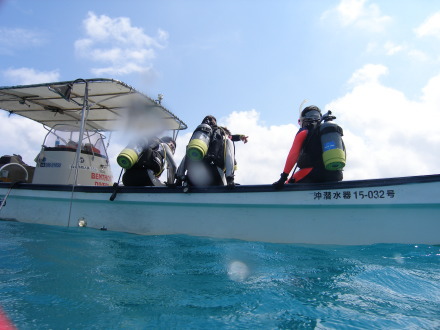 空は快晴!海は穏やか!3名だけでの貸切便でダイビングスタートです。