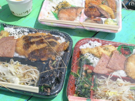 ランチはウエットスーツのままでも食べる事できるお店でタコライスをペロリです。