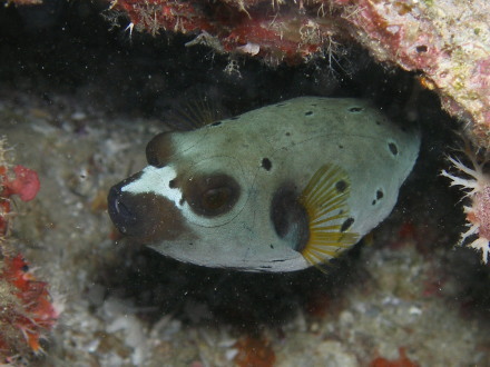 アザラシみたいな顔のコクテンフグは沖縄限定です。まだ子供の個体でしたね。