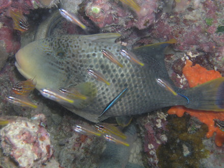 アカモンガラやグルクン、カスミチョウチョウウオ、テングハギモドキなど魚影が濃いのも上級者ポイントならでは!
