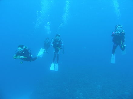 1本目は穏やかなサンゴいっぱいのポイント!もちろんみなさんロープ無しのフリー潜降。しかもウエイト1キロ減。