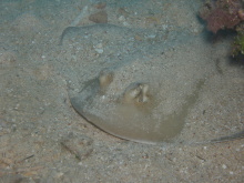 ボートに戻る途中、岩陰にはヤッコエイがいました。可愛いエイですが尻尾には毒あるので注意ですよ。