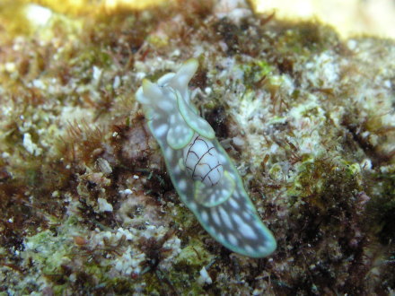 綺麗な体色のムラサキウミコチョウにも出逢えました。このウミウシ、飛んじゃうのです!