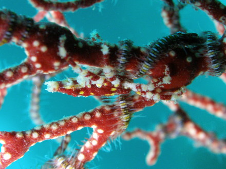 本日の最終日となりましたけんじさんは快く了解してくれました。ありがとうございます!前回、米軍の輸送船が 入港するため潜れなかったレッピーへ。西海岸と違った生物豊富な海をご紹介いたします。マーベラスダイブはじまり! けんじさんのツーピースウエットは海猿仕様!目指せ海猿なのです。 チョウチョウコショウダイの若魚が休憩中でした。この大きさまでなら柄が綺麗ですね。 砂に潜る珍しいオキナワフグです。他のポイントでは見ることが無いのでレアモノかな? タイワンカマスがいっぱい群れていました。凄い数でしたよ。 ニセクロスジギンポは指示棒を前に出すとニョ〜と出てきます。噛み付くので指だしは注意! サラサハタの若魚がいました。このお魚も西海岸では見かけませんよ。 コブシメちゃんは敏感でした。桟橋で釣りしている人がいたからかな? 僕的にヒットはオキゴンベ!他のゴンベより沖縄では珍しいですね。瞳はエメラルドなのだ。 イソバナにはたくさんのイソバナガニが住んでいました。擬態上手ですね。 サンゴの間にはシンチャンエビが見え隠れ。クレヨンしんちゃんそっくりなのだ。 休憩中は島弁ペロリ!今日も3本たっぷり潜って3日終了。ありがとうございました! 透明度はちょっと残念(レッピーはいつも濁ってるけど)。しかし、こんなコンディションでもストレスフリーで潜れば